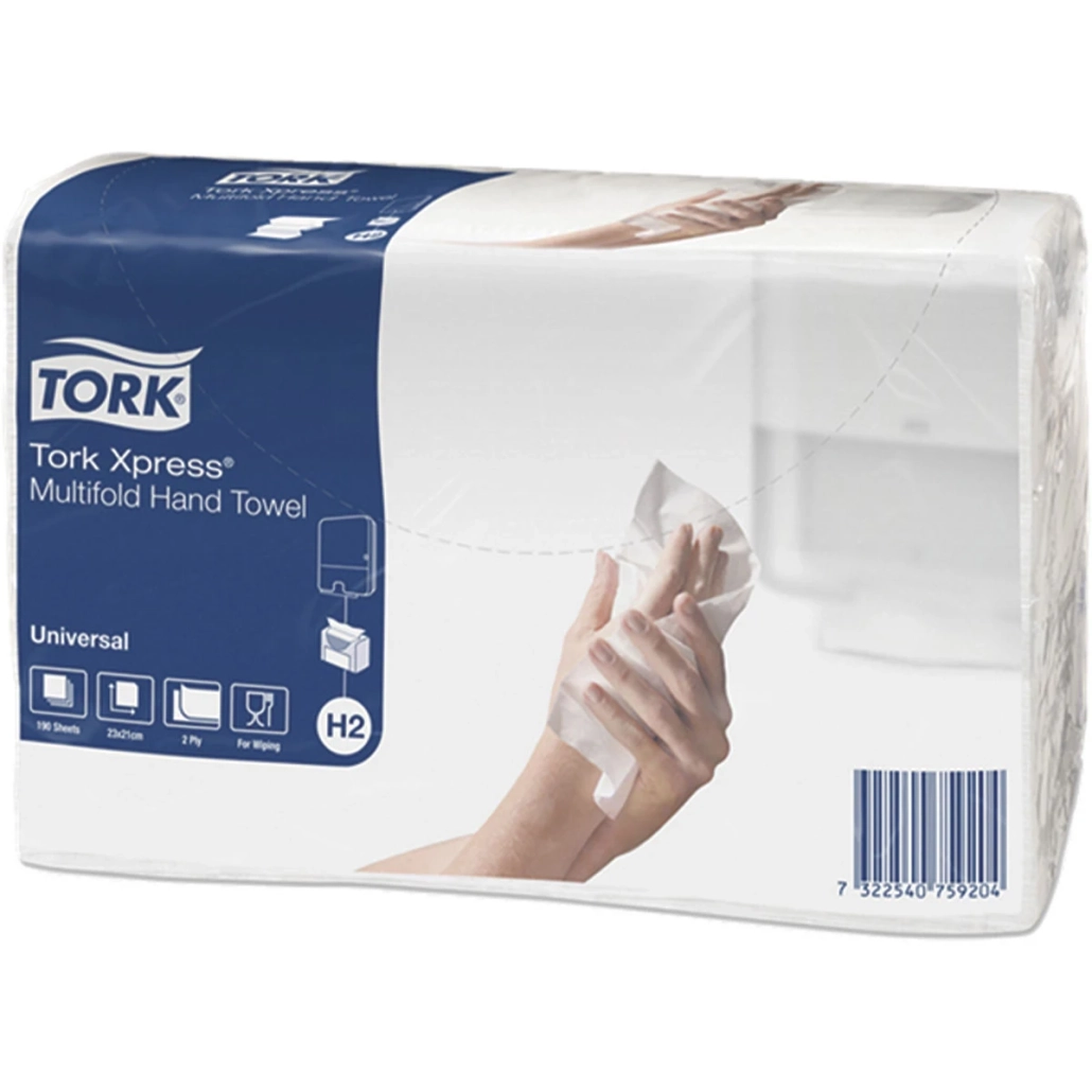 Tork Express H2 håndklædeark dækker de fleste basale behov for håndaftørring. Økonomisk løsning der især egner sig til toiletter og miljøer med en middel brugerfrekvens.